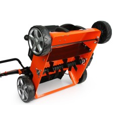 • Raccolta detriti: Il cestello raccoglie detriti e materiale residuo durante le operazioni di scarificazione e aerazione, mantenendo l'area di lavoro pulita e agevolando il processo di manutenzione del prato.