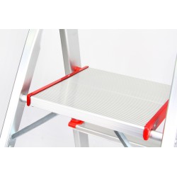 La struttura, composta da due gradini e da una piattaforma superiore, offre stabilità e sicurezza grazie a superfici ampie, zigrinate e antiscivolo, fissate saldamente ai montanti con rivetti rinforzati.