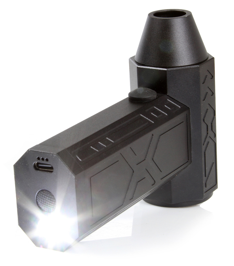 torcia integrata con tre modalità di illuminazione, attivabile tramite il pulsante inferiore posto accanto alla porta di ricarica e regolabile con successive pressioni.
