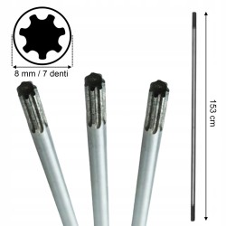 Asta di trasmissione 153cm Ø8mm attacco quadrato/7/9 denti in acciaio temprato