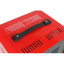 Il caricabatterie è dotato di morsetti protetti da uno spesso strato di gomma e una comoda maniglia che consente di trasportarlo e posizionarlo ovunque senza rischi di scottature, sporco o cadute.
