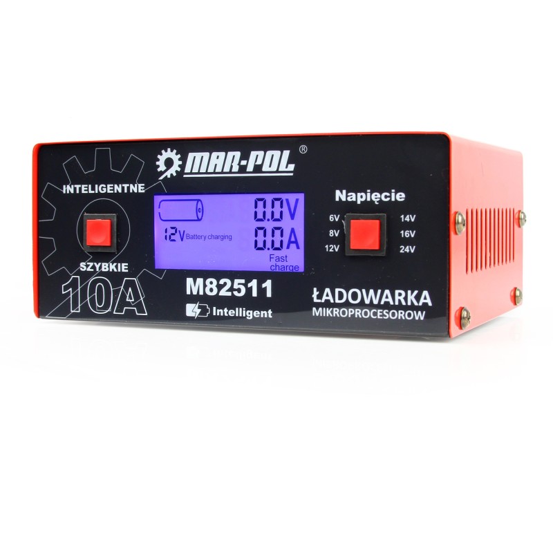 Il caricabatterie a microprocessore MAR-POL è dotato di sistema PWM per caricare batterie da 6, 8, 12, 14, 16 e 24V, anche con tensioni non standard, scegliendo i parametri corretti in modo automatico.