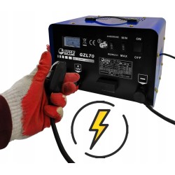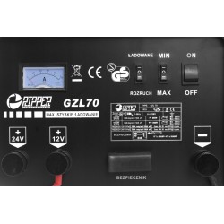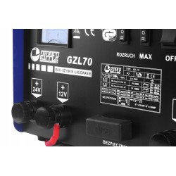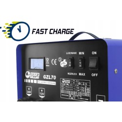 Il caricabatterie GZL-70 con funzione di ricarica rapida è un dispositivo professionale per caricare batterie al piombo con una tensione di 12/24 V e capacità della batteria fino a 500 Ah.