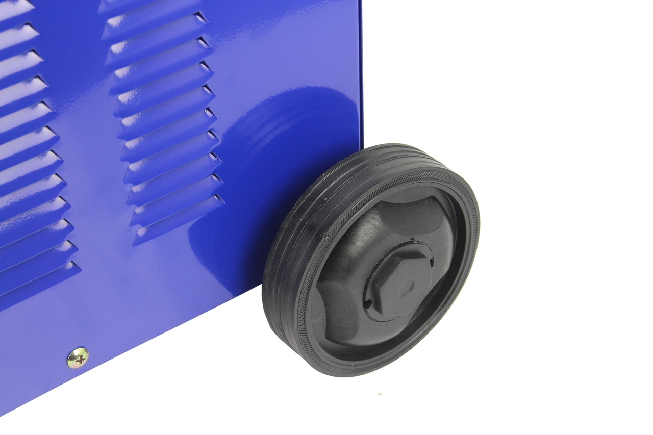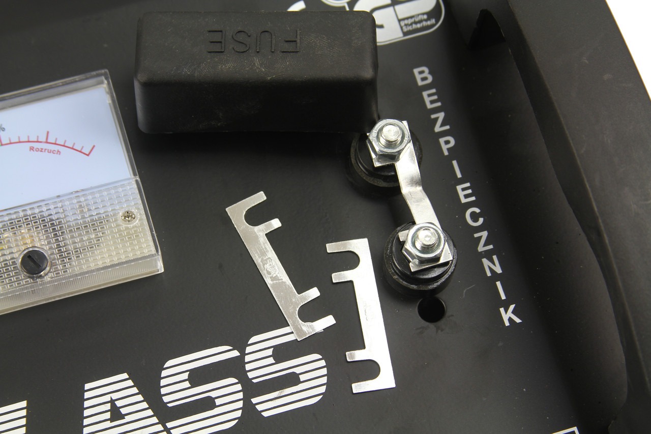 Il caricabatterie è completo di fusibili di ricambio e ruote per il trasporto, rendendolo pratico e versatile per l'utilizzo in diverse situazioni.
