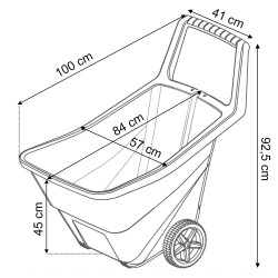 Con il suo design universale a due ruote, la carriola è particolarmente manovrabile e può essere utilizzata sia per la spinta che per la trazione, rendendola estremamente pratica per una varietà di lavori di manutenzione.