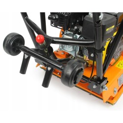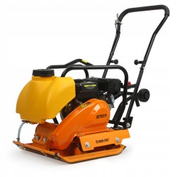 Il compattatore a scoppio, equipaggiato con una piastra metallica vibrante azionata da un motore, è progettato per la compattazione di substrati vari, come terreno e superfici stradali.