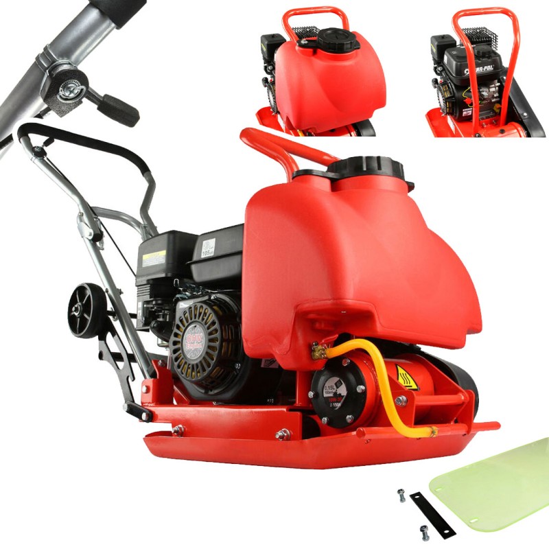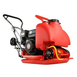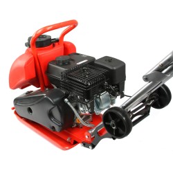 Il compattatore a scoppio, equipaggiato con una piastra metallica vibrante azionata da un motore, è progettato per la compattazione di substrati vari, come terreno e superfici stradali.