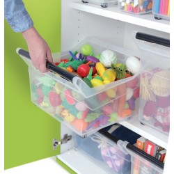 Realizzati in un materiale flessibile e trasparente, i contenitori consentono di identificare facilmente gli oggetti riposti, semplificando la ricerca.
