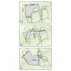 | La copertura creata dal coprisedile è una sorta di amaca dove il cane può sdraiarsi comodamente, proteggendolo dalle frenate brusche e dagli urti causati dalla guida. Il materiale si attacca alla tappezzeria, prevenendo lo scivolamento della copertura e consentendo al cane di mantenere una posizione stabile. La copertura dell'area tra i sedili anteriori impedisce all'animale di passare avanti nell'auto, in modo da non doversi preoccupare durante il viaggio. | |