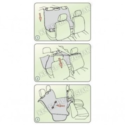 | La copertura creata dal coprisedile è una sorta di amaca dove il cane può sdraiarsi comodamente, proteggendolo dalle frenate brusche e dagli urti causati dalla guida. Il materiale si attacca alla tappezzeria, prevenendo lo scivolamento della copertura e consentendo al cane di mantenere una posizione stabile. La copertura dell'area tra i sedili anteriori impedisce all'animale di passare avanti nell'auto, inoltre ha delle aperture che consentono di legare il cane al sistema di cinture di sicurezza della macchina, in modo da non doversi preoccupare durante il viaggio. | |