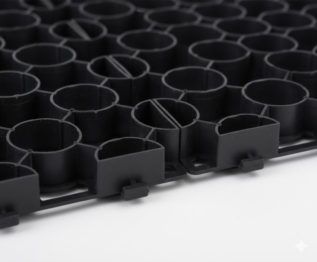 Ventilazione ottimale: il disegno e le perforazioni della griglia favoriscono la circolazione dellaria nel terreno, aiutando le radici dellerba a respirare e sostenendo una crescita più sana e uniforme.