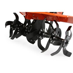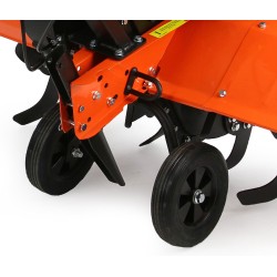 Le grandi e robuste ruote di supporto facilitano lo spostamento della motozappa anche su terreni irregolari, rendendo le manovre più semplici e meno faticose.