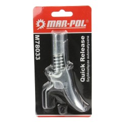 Beccuccio a sgancio rapido con leva per ingrassatore, progettato per facilitare e velocizzare le operazioni di lubrificazione durante la manutenzione.