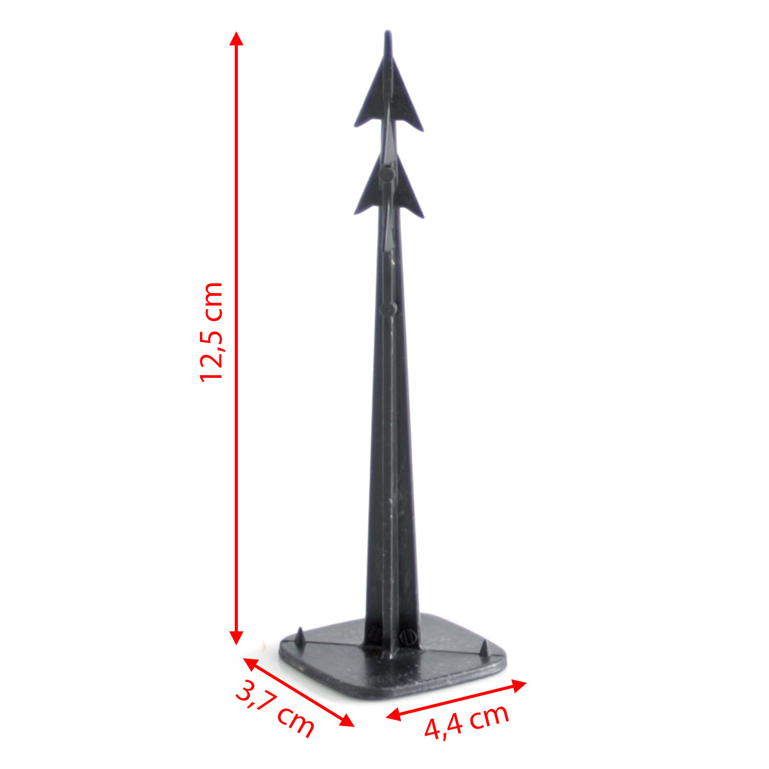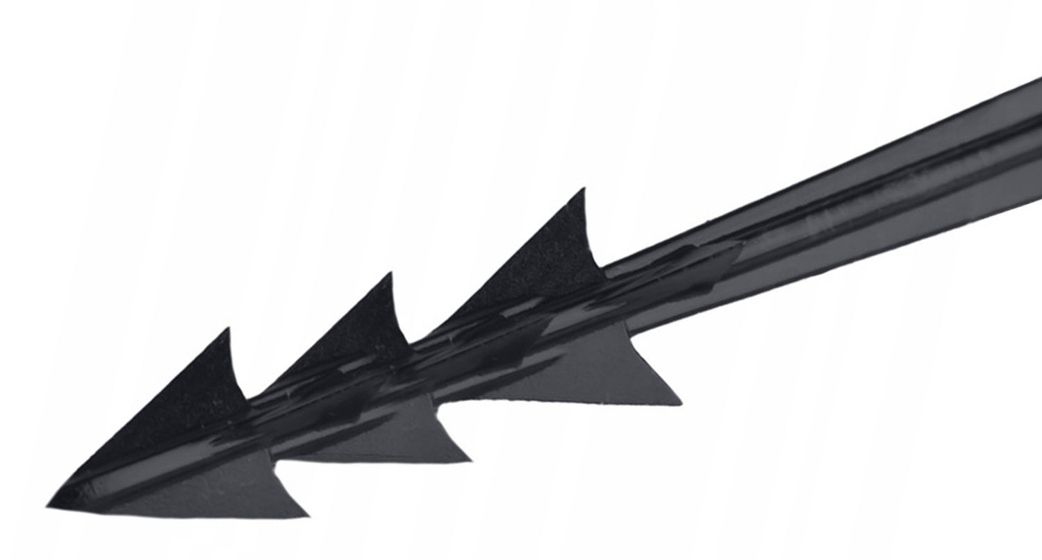 - La forma a arpione, con denti orientati lungo la punta, assicura un ancoraggio solido e rende difficile lo sfilamento accidentale.