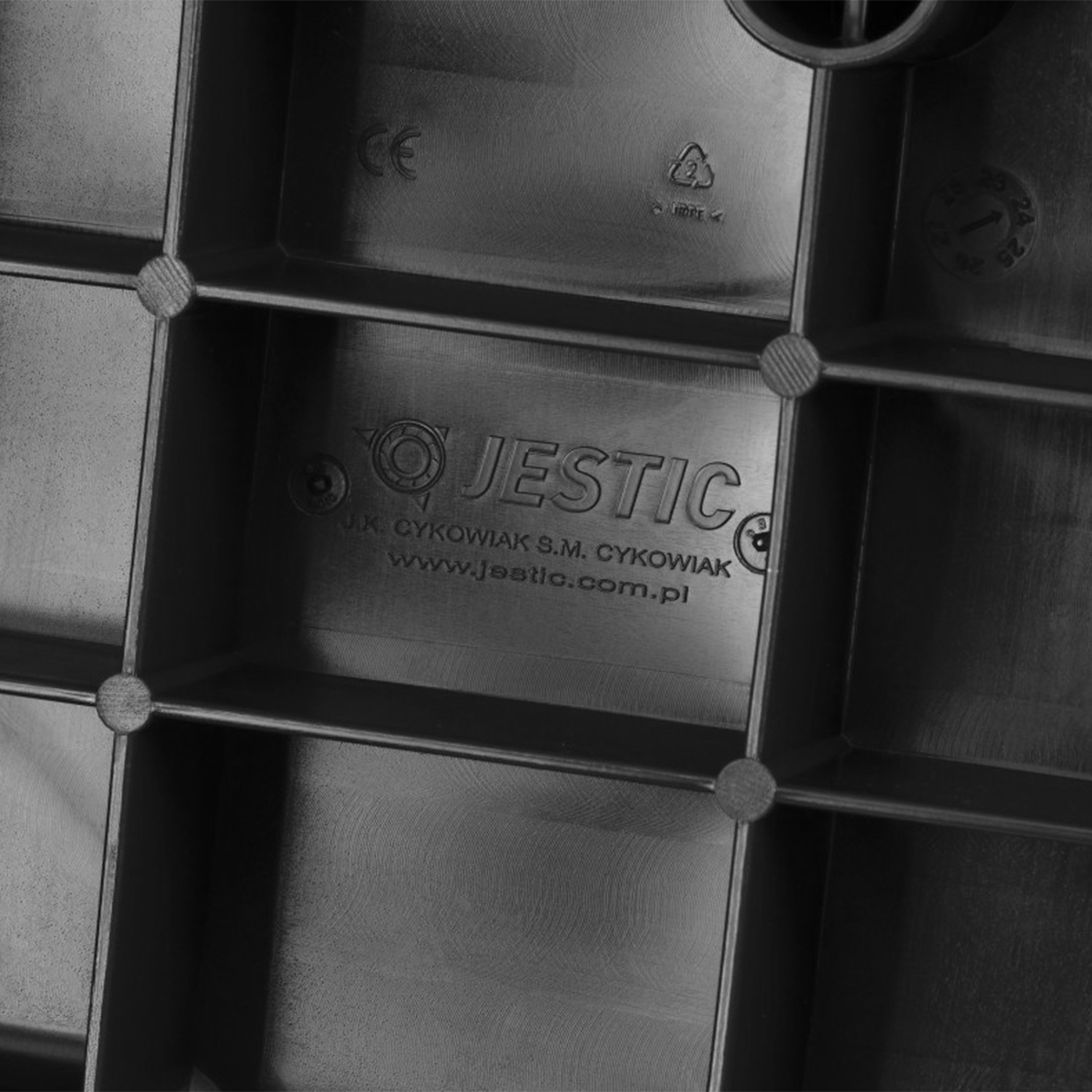 Compatibilità totale con cassette EURO-NORM (E1, E2, E3, P1), grazie a una geometria studiata per il corretto appoggio e posizionamento delle cassette. Il design impilabile (nestabile) a 9 piedi, con profilo perimetrale sagomato, consente inoltre di ridurre lingombro durante il trasporto a vuoto e lo stoccaggio, ottimizzando lo spazio in magazzino e i costi logistici.