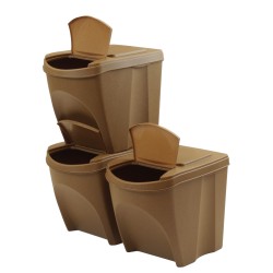 Ben realizzato e capiente (25L), con una struttura progettata appositamente per spazi limitati, che facilita il posizionamento dei cestini in file stabili o colonne grazie a speciali incisioni sul coperchio e una rientranza sul corpo.