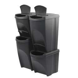 Ben realizzato e capiente (25 e 35L), con una struttura progettata appositamente per spazi limitati, che facilita il posizionamento dei cestini in file stabili o colonne grazie a speciali incisioni sul coperchio e una rientranza sul corpo.