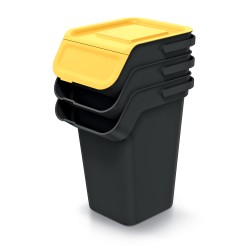 Ben realizzato e capiente (20 o 25L), con una struttura progettata appositamente per spazi limitati, che facilita il posizionamento dei cestini in file stabili o colonne grazie a speciali incisioni sul coperchio e una rientranza sul corpo.