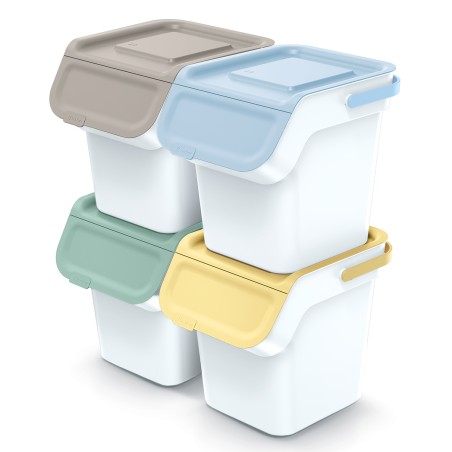 Set di Bidoni Cestini Kaddi Q | per Raccolta Differenziata Riciclaggio | Impilabili | in Plastica | per Casa Interni