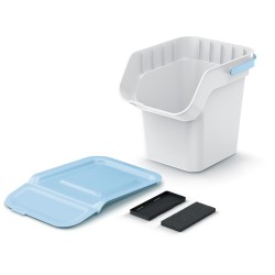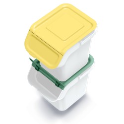 Ben realizzato e capiente (20 o 25L), con una struttura progettata appositamente per spazi limitati, che facilita il posizionamento dei cestini in file stabili o colonne grazie a speciali incisioni sul coperchio e una rientranza sul corpo.