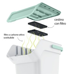 I cestini di questa serie si distinguono per il filtro al carbone attivo posto sotto il coperchio, il cui compito è assorbire ed eliminare gli odori.