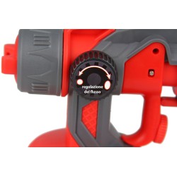 Dotata di un sistema a spruzzo con regolazione del flusso e tre ugelli intercambiabili, garantisce una distribuzione uniforme del materiale su ogni tipo di superficie.