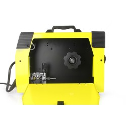 Regolazione della corrente: La corrente di saldatura può essere regolata con precisione tramite un potenziometro sul pannello di controllo avanzato. Il display mostra chiaramente la corrente impostata in ampere, garantendo un'efficace regolazione durante l'operazione.