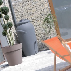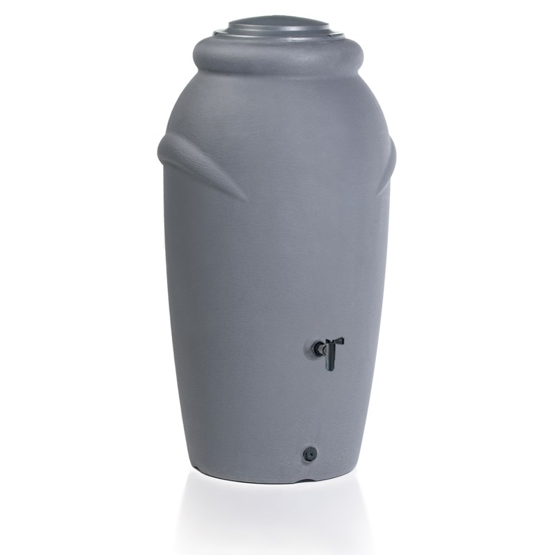 Il serbatoio è dotato di un' apertura superiore con coperchio e inserto per fiori, due punti di attacco per il tubo di scarico della grondaia e due fori filettati per un rubinetto o un attacco rapido per il montaggio di un tubo da giardino.