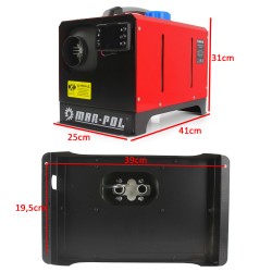 Il riscaldatore può essere collegato alla rete elettrica AC 230V/50Hz , che permette di riscaldare case, magazzini e garage, oppure all'accendisigari dell'auto o alla batteria DC 12V 15A , grazie alla quale è possibile riscaldare facilmente un'auto o una roulotte.
