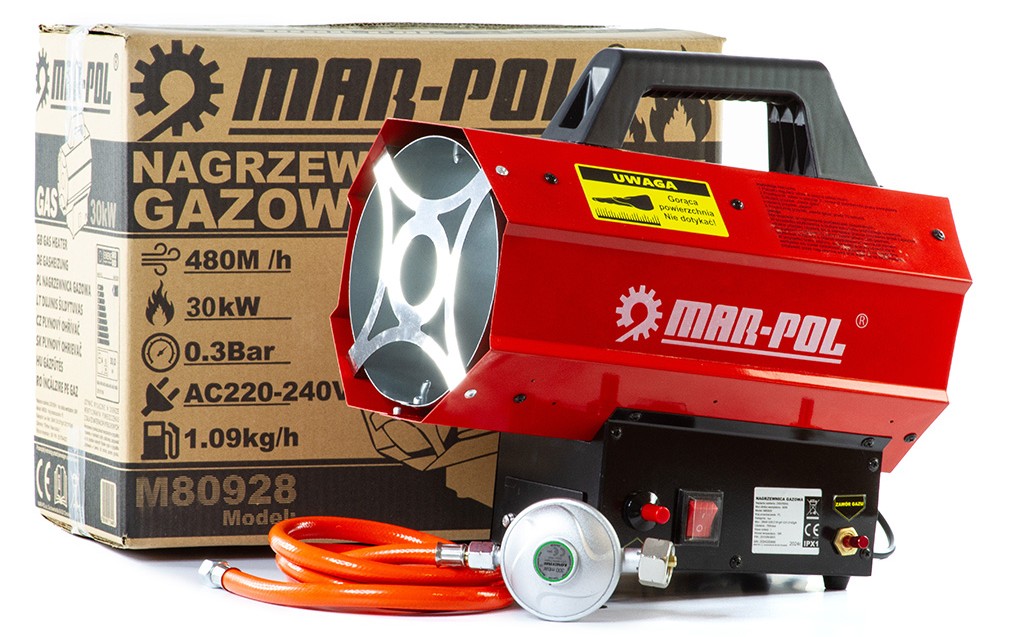 Cerchi una soluzione efficace per riscaldare rapidamente grandi spazi? Questo riscaldatore a gas MAR-POL da 30 kW è la scelta ideale per garage, officine, capannoni, magazzini, serre e cantieri.