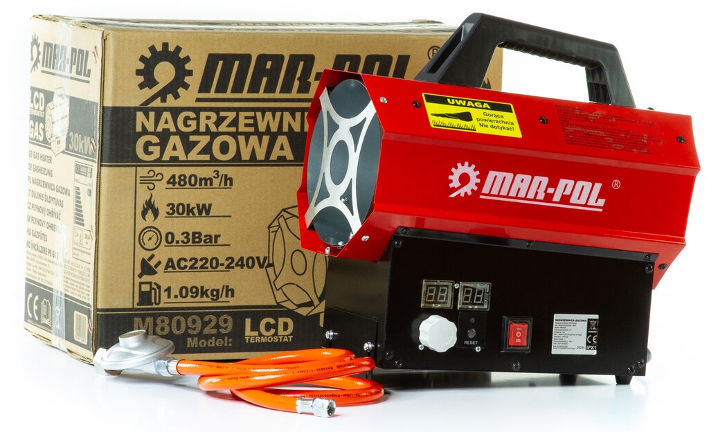 Cerchi una soluzione efficace per riscaldare rapidamente grandi spazi? Questo riscaldatore a gas MAR-POL da 30 kW è la scelta ideale per garage, officine, capannoni, magazzini, serre e cantieri.