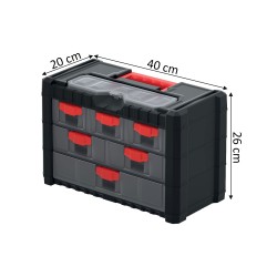 Organizer Cassetta Valigetta per Attrezzi | Portatile con Manico | Impilabile | Appendibile | 6 Cassetti con Sistema di Bloccaggio | 40x20x26 cm | in Plastica Resistente