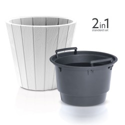 I vasi sono dotati di set 2in1 con inserto di dimensioni più piccole per diminuire la quantità di terra necessaria e facilitarne lo spostamento.