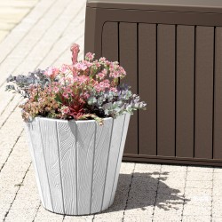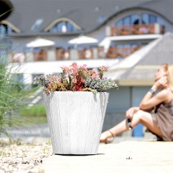 Questi vasi di plastica, dalla superficie simil legno e dal design moderno, sono perfetti per creare un'atmosfera raffinata all'interno o all'esterno della casa.