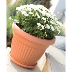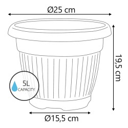 Questi vasi di plastica, dalla superficie liscia con sottili scanalature e dal design classico, sono perfetti per creare un'atmosfera raffinata ed accogliente.