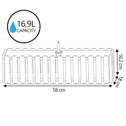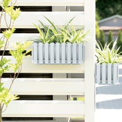 I vasi sono dotati un sistema di irrigamento automatico per le piante e ganci per poter sospenderli in modo sicuro su ringhiere, corrimani o balaustre.