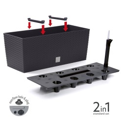 I vasi sono dotati di set 2in1 con sistema di irrigazione che consente di controllare in qualunque momento la quantità d'acqua presente.