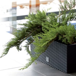 Questi vasi di plastica, dalla superficie simil rattan e dal design moderno, sono perfetti per creare un'atmosfera raffinata ed accogliente.