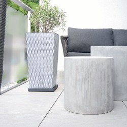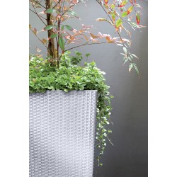 Questi vasi di plastica, dalla superficie simil rattan e dal design moderno, sono perfetti per creare un'atmosfera raffinata ed accogliente.