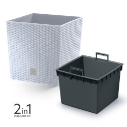I vasi sono dotati di set 2in1 con inserto di dimensioni più piccole per diminuire la quantità di terra necessaria e facilitarne lo spostamento.
