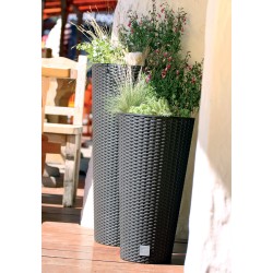 Questi vasi di plastica, dalla superficie simil rattan e dal design moderno, sono perfetti per creare un'atmosfera raffinata ed accogliente.
