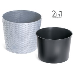 I vasi sono dotati di set 2in1 con inserto di dimensioni più piccole per diminuire la quantità di terra necessaria e facilitarne lo spostamento.