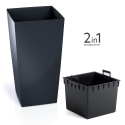 I vasi sono dotati di set 2in1 con inserto di dimensioni più piccole per diminuire la quantità di terra necessaria e facilitarne lo spostamento.