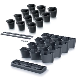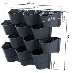 Set di 12 Vasi Modulari Per Fiori Piante Cascade Wall W | Decorativi | in Plastica | 67x17,7x57 cm | da Interno Esterno | Neri | 12 x 0,75 Litri | Design Moderno